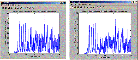 distance between X coordinates between both particles');