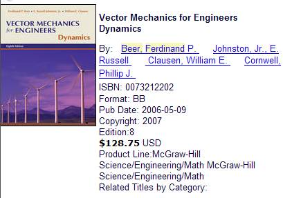Vector Mechanics for Engineers Dynamics, 8th edition.