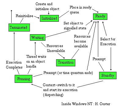 | Running : Ready to Run : The process is in a run queue ready to use the CPU when available. | Standby : The thread has been selected to run next by the processor, only one thread can be in this state. | |