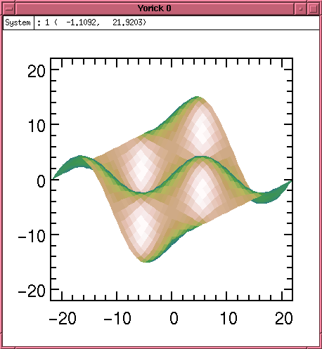 Under Linux, Yorick is linked with the GIST graphics subsystem, allowing immediate display of plots and diagrams. Plots are interactive, allowing the user to zoom in and out, stretch axes, and crop the displays using the mouse. Yorick is capable of displaying sequences of plots over time as a move, and because of this the command to prepare for a new image is fma, or frame advance. Onward.
