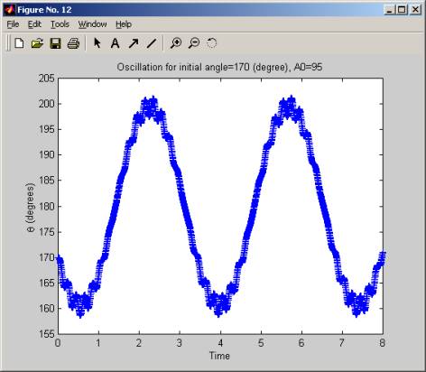 title(sprintf('Oscillation for initial angle=%d (degree), A0=%d',