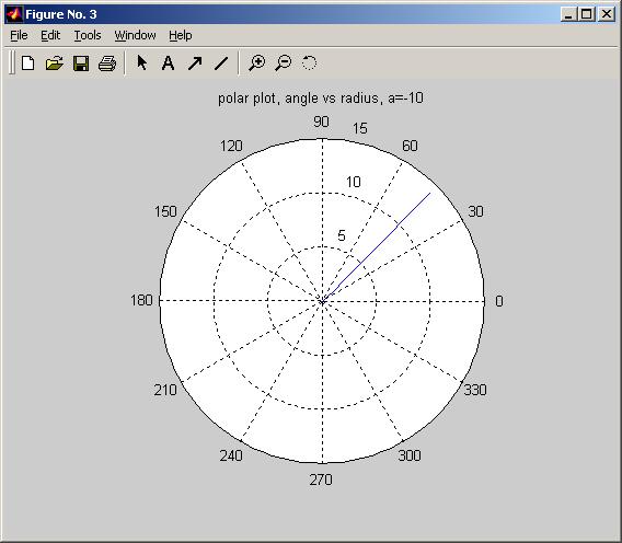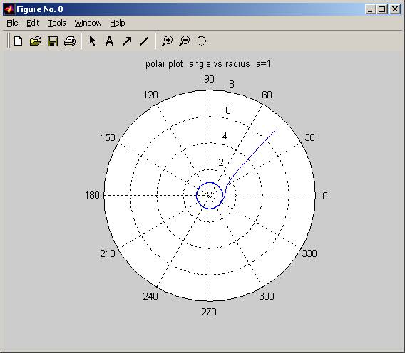 title(sprintf('polar plot, angle vs radius, a=%g',a));