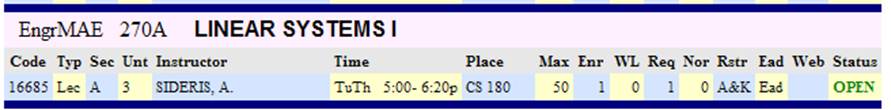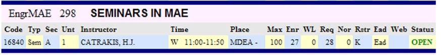MAE 223A 3:30-4:50 Num methods (AUDIT) CS 259 |