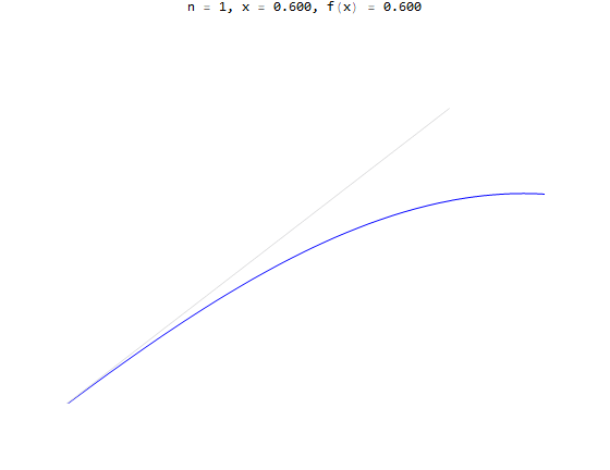 It shows the fixed point interation is stable and converges to the limit \(x=0\) from both sides. Hence \(x=0\) is a sink.