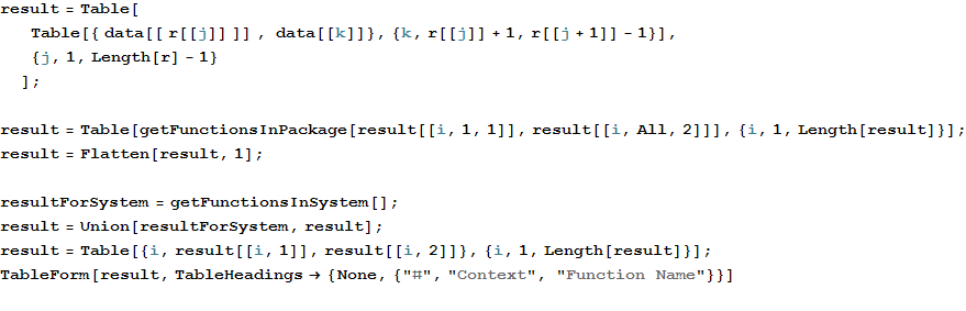 2) Select all the output cells, COPY AS TEXT, then put the result in plain text file called “packagesFunctions.txt” in the same folder as this notebook