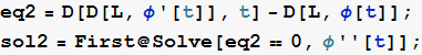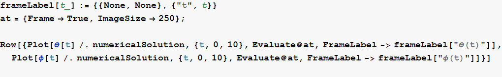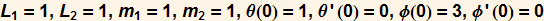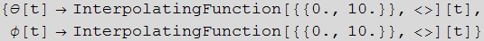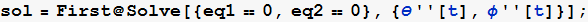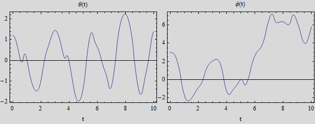 Numerically solve the 2 equations found above for θ(t) and φ(t), use some arbitrary parameters