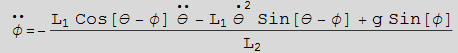 This diagram shows the velocity and acceleration components of the 2 masses in the double pendulum.