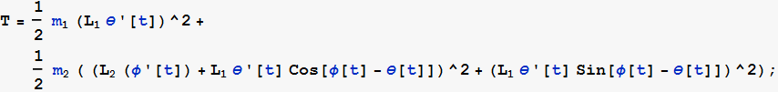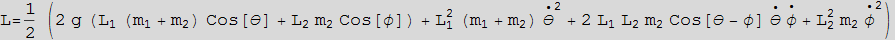 Comparing the derivation of equation of motion for double pendulum by method of F=ma and by energy (Lagrangian) method