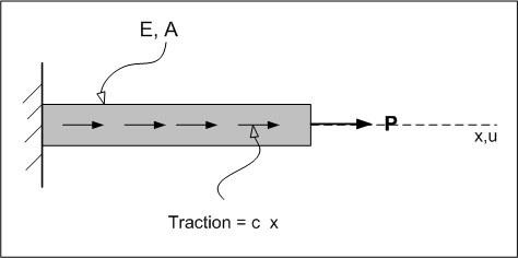 simple axially loaded beam fixed at one end and free to extend on the other end. The axial deformation is