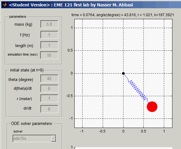 called by the Matlab GUI to solve equation of motion Lab 1 MAE 121 |