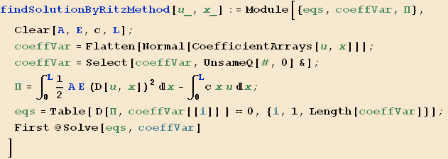 and repeat Ritz method. Instead of making the same steps as above, let us write a function which accepts a trial function u(x) and returns back the solution. Find define the function