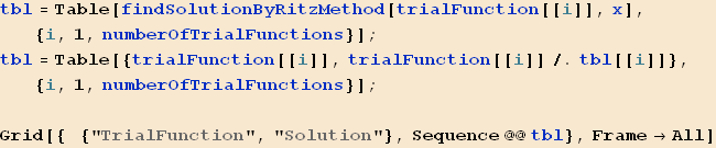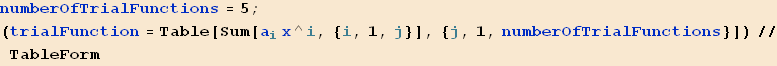 What happens if we add more terms to the trial functions? We should expect that the solution would not change. This is confirmed by the following table generated using the above function